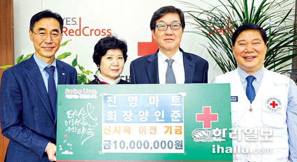[한라일보] 양인준 진영마트 회장은 지난 29일 대한적십자사제주도지사(회장 정태근)를 방문해 제주적십자 신사옥 이전 기금 성금 1000만원을 기탁했다.