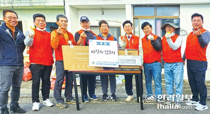 서귀포천지라이온스클럽(회장 강병철)은 지난 25일 회원 20여 명이 참석한 가운데 정방동(동장 김현숙)의 저소득 가정을 방문해 벽지 교체, 도배, 쓰레기 정리 등 주거 환경 개선 봉사 활동을 실시하고 컴퓨터와 책상을 전달했다.