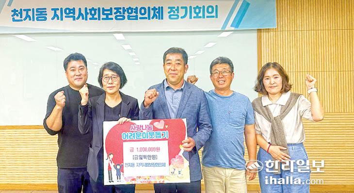 서귀포시 천지동지역사회보장협의체(공동 위원장 강은아·류상안)는 최근 천지동 어려운 이웃을 위한 성금 100만원을 기탁했다.