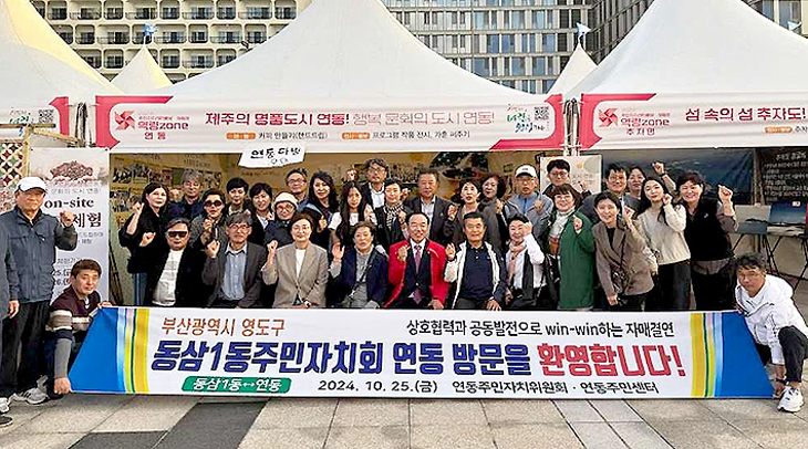 제주시 연동주민센터(동장 원훈철)와 연동주민자치위원회(위원장 전영찬)는 지난달 25일 부산 영도구 동삼1동주민자치위원회와의 '자매결연 교류 행사'를 열었다.