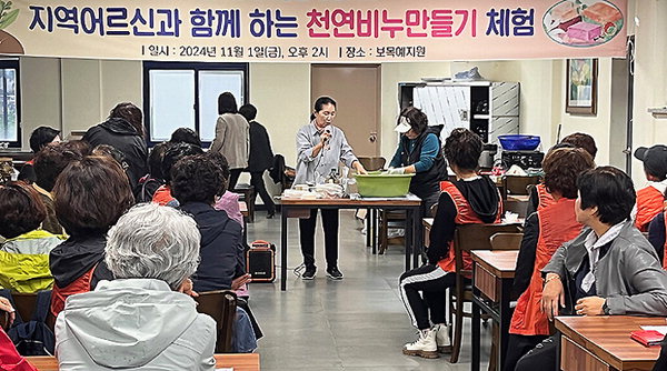 이날 행사에서는 어르신과 협의회 회원이 짝을 이뤄 친환경 재료를 활용한 천연비누 만들기를 체험했다.