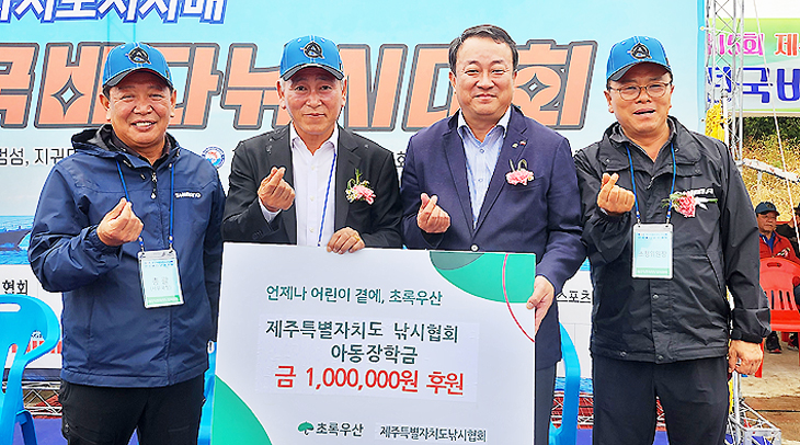 제주도낚시협회(회장 인석교)는 지난달 26일 제주도지사배 전국바다낚시대회에서 초록우산 제주지역본부(본부장 변정근)에 아동 장학금 100만원을 전달했다.
