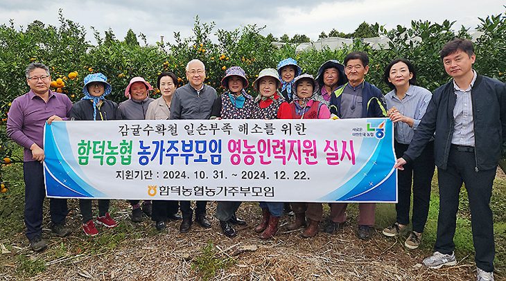함덕농협(조합장 현승종)과 농가주부모임(회장 김기순)은 감귤 수확철을 맞아 지난달 31일부터 약 두 달간 일손 부족으로 어려움을 겪고 있는 농업인 지원을 위해 감귤수확단을 구성해 인력지원에 나선다고 밝혔다.