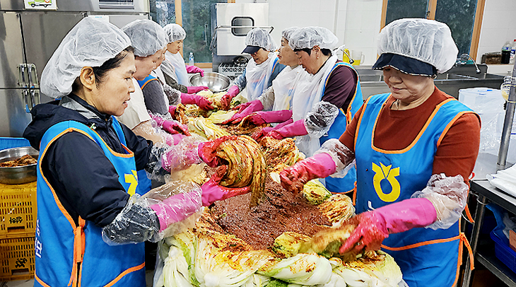 농협중앙회 제주본부(본부장 윤재춘)와 (사)농가주부모임 제주특별자치도연합회(회장 현효숙)는 지난 1일 제주도사회복지협의회에서 회원과 농협직원 등 30명이 참여한 가운데 '찬찬찬(찬饌贊) 사랑의 김치 나눔' 봉사를 실시했다.