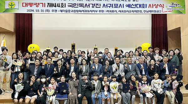 [한라일보] 새마을문고중앙회서귀포시지부(회장 송춘화)는 지난달 31일 서귀포시청 별관 2층 문화강좌실에서 대통령기 제44회 국민독서경진 서귀포시예선대회 시상식을 열었다.