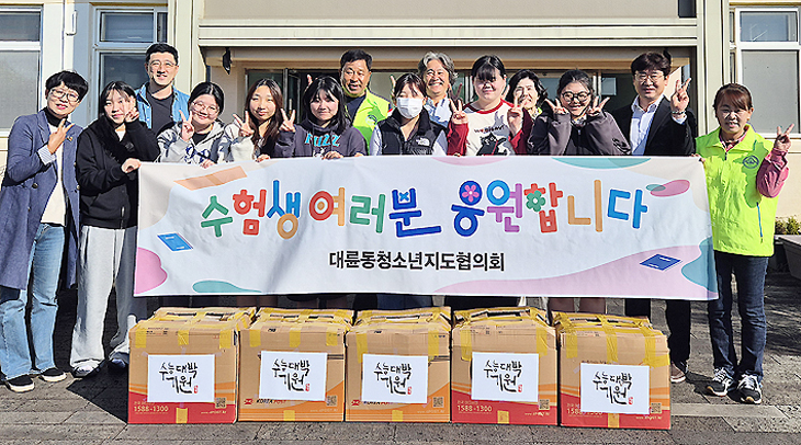서귀포시 대륜동청소년지도협의회(회장 강영진)는 지난 12일 서귀포여자고등학교를 방문해 2024학년도 대학수학능력시험을 앞둔 고3 학생들을 위해 정성껏 준비한 수능 응원 물품을 전달했다.