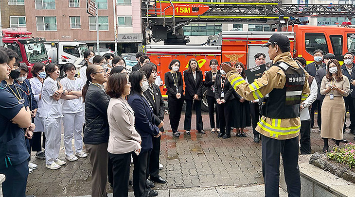 이번 합동 소방훈련은 소방차량 18대를 포함해 소방공무원 21명, 병원 관계자 40명, 환자 10명 등 70여 명이 참여한 가운데 실제 화재 상황을 가정해 환자 피난 유도와 화재 초기 대응에 중점을 두고 진행됐다.