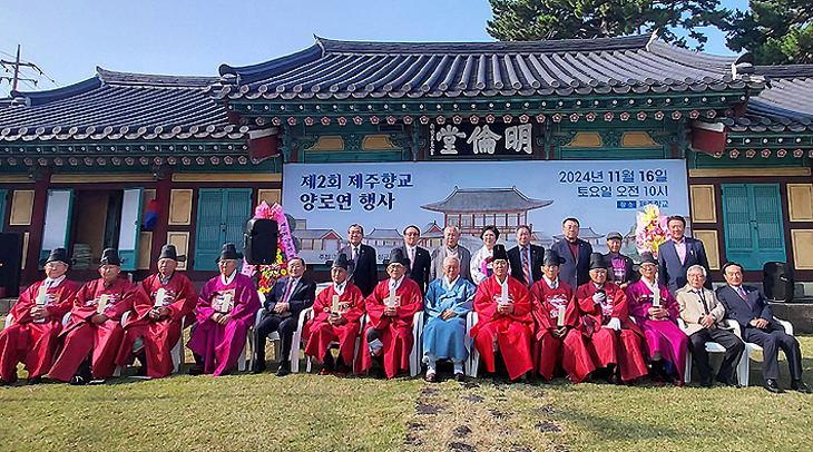 제주향교(전교 진인수)는 지난 16일 최종수 성균관장, 송재호 전 국회의원, 각 지회 유림, 지역 어르신 등 300여 명이 참석한 가운데 제2회 양로연 행사를 개최했다.