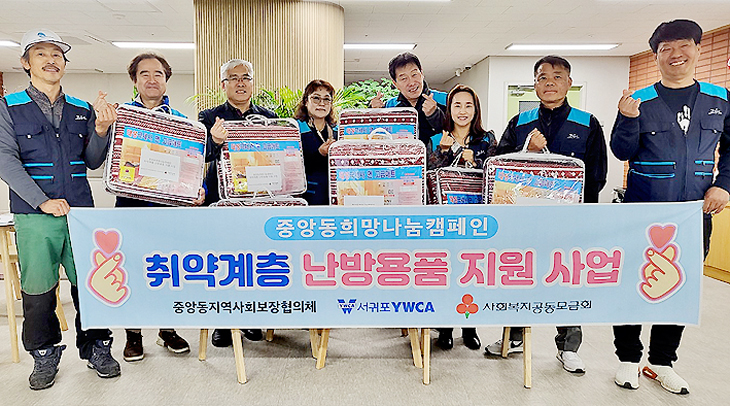서귀포시 중앙동지역사회보장협의체(공동위원장 박성우, 김용철)는 지난 20일 지역 내 독거노인, 장애인 등 한파에 취약한 11가구에 전기매트를 지원하고 안부를 확인했다.