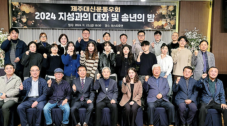 제주대신문동우회(회장 강명진)는 지난 22일 아스타호텔에서 동우회원과 현재 제주대신문 기자로 활동 중인 학생 등 30여 명이 참석한 가운데 '2024년 지성과의 대화 및 송년의 밤' 행사를 진행했다.