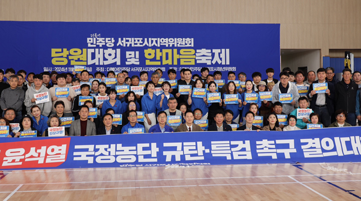 더불어민주당 서귀포시지역위원회는 지난 24일 서귀포 시민문화체육복합센터에서 위성곤 위원장, 김한규 도당위원장, 양병우 도의회 부의장 등 당원 200여 명이 참석한 가운데 당원대회를 개최했다.