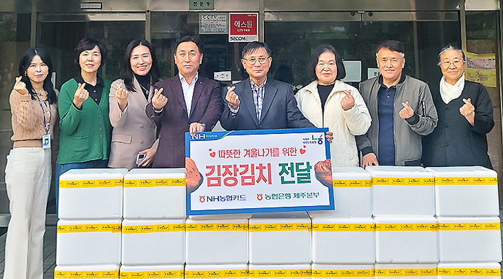 농협은행 제주본부(본부장 고우일)는 지난 21일 김치의날(11월 22일)을 맞아 제주원광요양원에 김치 300㎏을 비롯해 인효원(150㎏), 제주장애인종합복지관(200㎏) 등 3개 기관에 농협 한국김치 650㎏(500만원 상당)을 전달했다.