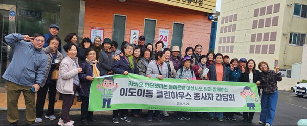 [한라일보] 주식회사 카카오의 지역사회공헌 프로그램 '인터넷하는 돌하르방'의 후원으로 제주를 위해 활동하고 있는 '이삼사오팀'(팀장 김성관)은 지난 20일 제주시 이도2동 주민센터 관계자(동장 한재영)와 클린하우스 종사자 50여 명이 참석한 가운데 간담회를 가졌다.