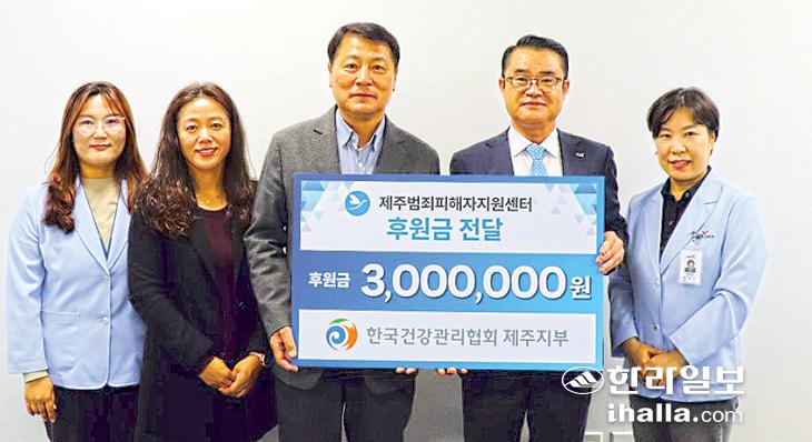 한국건강관리협회제주특별자치도지부(본부장 임정식)는 지난 21일 사회취약계층을 위한 사회공헌 성금을 범죄피해자지원센터에 전달했다.