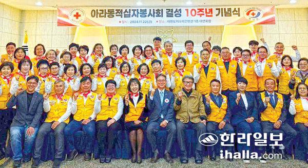 [한라일보] 아라동적십자봉사회(회장 현춘실)는 지난 22일 제주시 아젠토피오레컨벤션에서 적십자 가족을 비롯한 제주시 아라동 지역 자생 단체장 등 120여 명이 참석한 가운데 결성 10주년 행사를 진행했다.