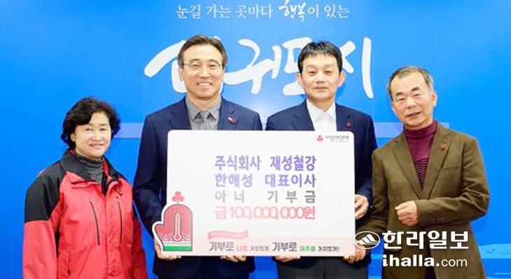 재성철강 한해성대표는 이번에 성금 1억원을 기부해 제주사회복지공동모금회 고액 기부자 모임인 아너소사이어티 149호 회원이 됐다. 기부한 성금은 ▷사회복지공동모금회 취약 계층 지원 사업(긴급 지원, 치과 치료 지원 등) 5000만원 ▷서귀포시 어려운 이웃 지원 4000만원 ▷서귀포시 홀로 사는 노인 지원센터 지원 1000만원이 각각 사용된다.