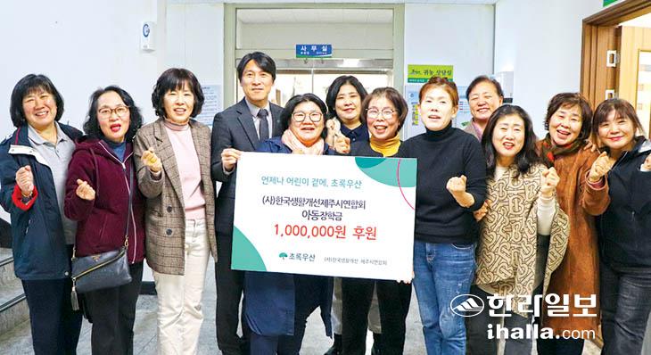 (사)한국생활개선제주시연합회(회장 정문경)는 지난 4일 제주시 애월읍에 위치한 제주농업기술센터에서 초록우산 제주지역본부(본부장 변정근)에 아동지원금 100만원을 전달했다.