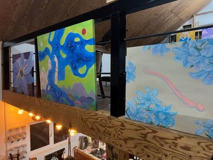 장영·강연주 작가의 2인전 '선의 숨결, 바람이 되어'가 진행 중인 예술창고내맘 내부 모습. 장영 작가 제공