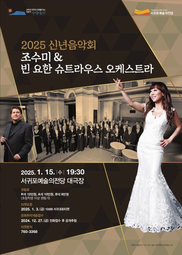내년 1월 15일 오후 7시30분 서귀포예술의전당 대극장에서 '2025 신년음악회 조수미&빈 요한 슈트라우스 오케스트라' 기획공연이 펼쳐진다. 세계적인 소프라노 조수미와 빈 요한 슈트라우스 오케스트라(지휘 요하네스 빌드너)가 함께하는 이날 무대는, 2025년 새해를 열며 관객들에게 감미로운 음악을 선사할 예정이다.
