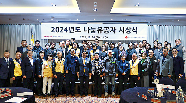 대한적십자사제주도지사(회장 정태근)는 지난 24일 아스타호텔에서 '2024 적십자 나눔유공자 시상식'을 개최했다.
