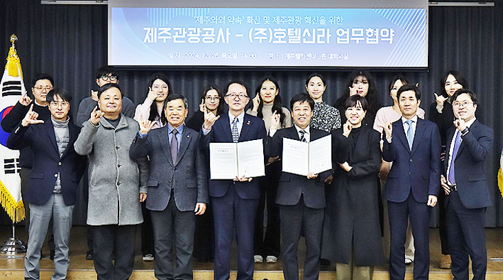 제주관광공사는 26일 제주웰컴센터에서 호텔신라(대표이사 사장 이부진)와 지속 가능한 제주 관광과 지역사회 발전을 위해 협력하는 업무협약을 체결했다.
