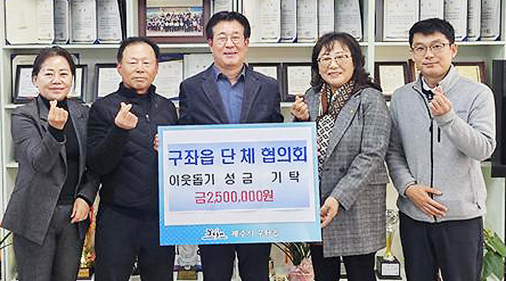 제주시 구좌읍단체협의회(회장 김대윤)는 지난달 31일 저소득 취약계층을 위한 이웃돕기 성금 250만원을 구좌읍(읍장 오상석)에 기탁했다.