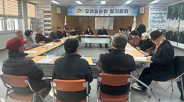 대한노인회제주시지회오라동분회(분회장 홍신생)는 지난달 30일 오라동주민센터 2층회의실에서 회원 20여 명이 참석한 가운데 정기총회를 개최했다.