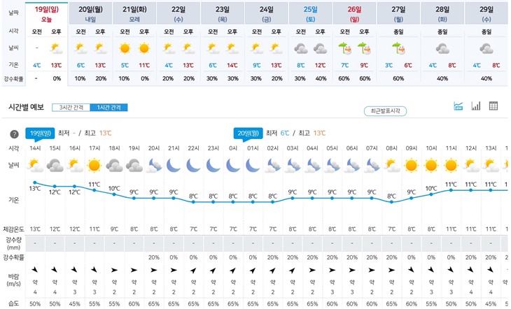 제주지방기상청 홈페이지 날씨 예보 갈무리.