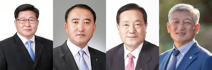 왼쪽부터 백성익 효돈농협조합장, 강성방 대정농협조합장, 김성범 중문농협조합장, 김용우 표선농협조합장.