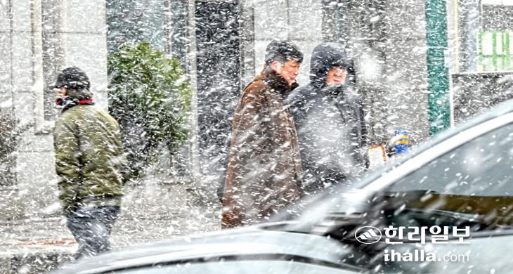 눈보라 몰아치는 제주시내