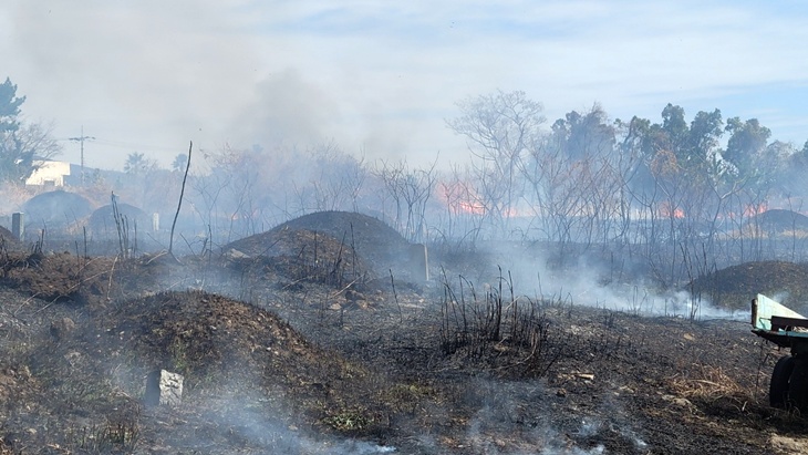 14일 서귀포시 중문 대포동 소재 한 야초지에서 화재가 발생해 봉분 등을 포함해 학교 운동장 크기 2배가량을 태웠다. 제주소방안전본부 제공
