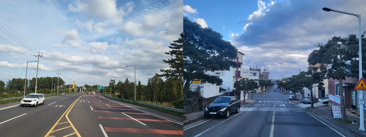 제주시 연동 애조로 연동교차로 개선사례(왼쪽)와 서귀포시 하효동 효돈파출소 동측 4가 개선사례(오른쪽). 한국도로교통공단 제주지부 제공