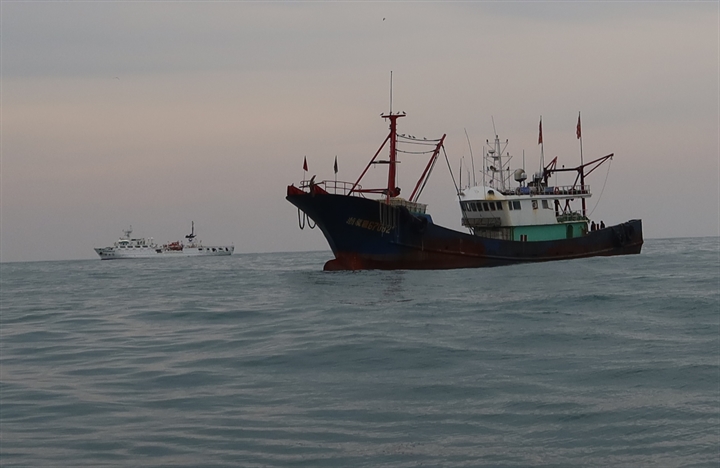 제주시 한경면 차귀도 인근 해상에서 불법 개조한 그물을 무단 사용하고 미격납한 중국어선 2척이 남해어업관리단에 적발됐다. 남해어업관리단 젝ㅇ