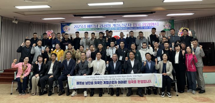 한림농협은 지난 9일 본점 대회의실에서 '2025년 베트남 공공형 계절근로자 입국 환영행사'를 개최했다. 한림농협 제공