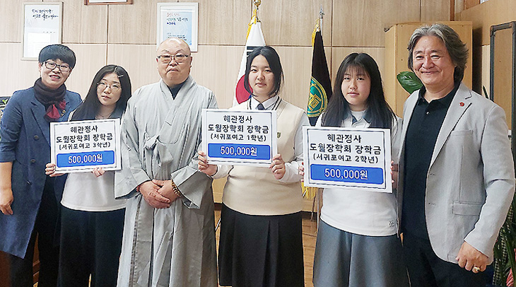 관효 스님은 "서귀포여고 학생들이 서귀포의 미래사회를 이끌어갈 인재로 성장하길 바란다"며 "앞으로도 지속적인 관심과 지원을 이어가겠다"고 말했다.