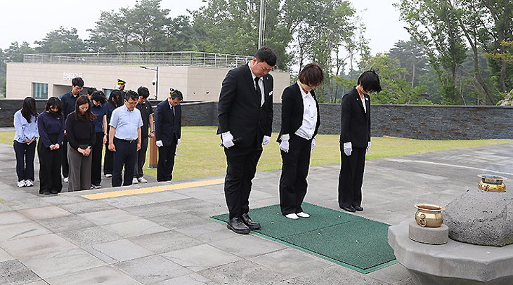 제주지방조달청 직원들은 현충탑에 헌화하고 주변 묘역을 돌아보며 순국선열과 호국영령들의 나라사랑 정신에 감사와 존경을 표하는 추모의 시간을 가졌다.