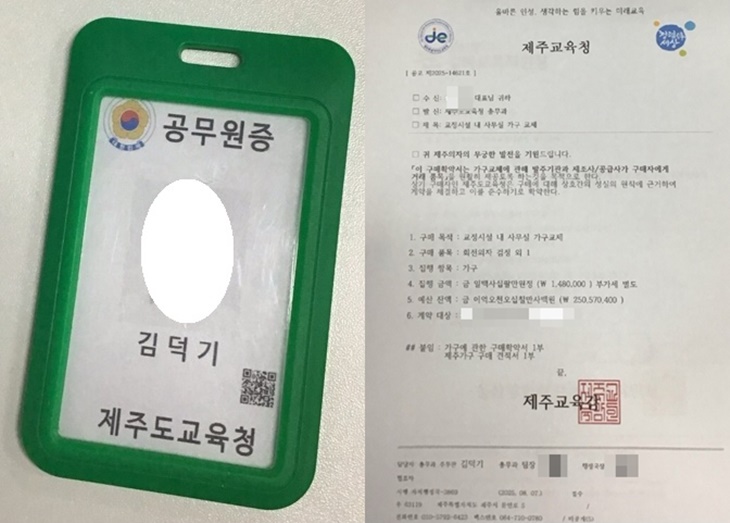 위조된 공무원증과 공문. 도교육청 제공