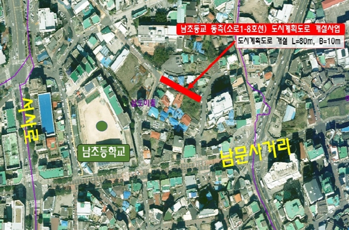 제주시 남초등학교 동측 도시계획도로 개설사업 예정지.