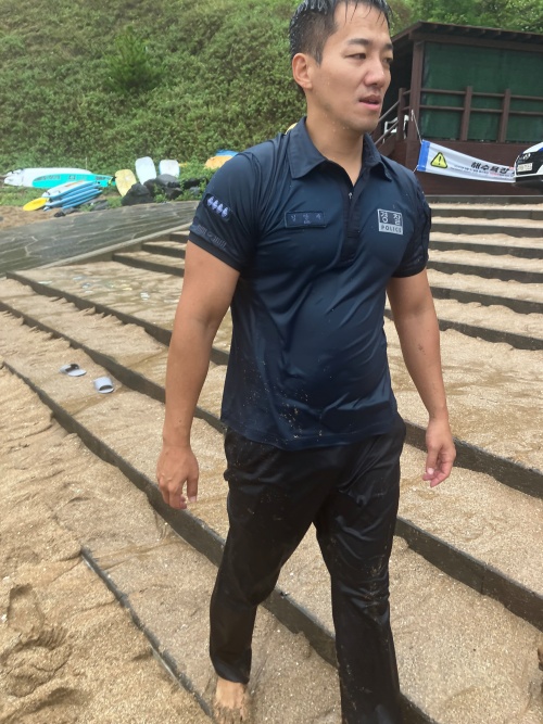 김 경사는 소방과 해경이 도착할 때까지 대기하면 자칫 요구조자가 위험해질 수 있다고 판단했다. 이에 인근 서핑업체에서 보드를 빌려 타고 약 2m 높이 파도를 뚫고 A씨를 무사히 구조했다. 평소 취미로 3∼4년간 배웠던 서핑 실력이 소중한 생명을 살렸다.