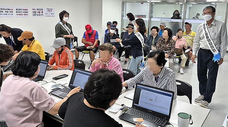 박정렬 통장협의회장을 비롯한 통장들은 일도2동 주민센터 2층 프로그램실에서 신청서 접수 지원, 번호표 배부, 민원 안내와 현장 질서 유지 등을 맡아 신청 초기부터 원활한 창구 운영을 돕고 있다.