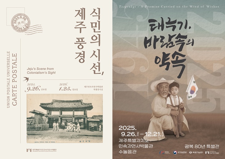 제주민속자연사박물관 특별전 '식민의 시선, 제주 풍경'-협력 전시 '태극기, 바람 속의 약속' 포스터