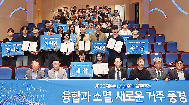 [한라일보] 제주개발공사(사장 백경훈)가 주최하고 제주도와 제주도건축사회(회장 현군출), 제주건축가회(회장 박경택)와 공동 주관한 'JPDC 제주형 공공주택 설계대전' 시상식이 24일 개발공사 삼다수본사에서 개최됐다.