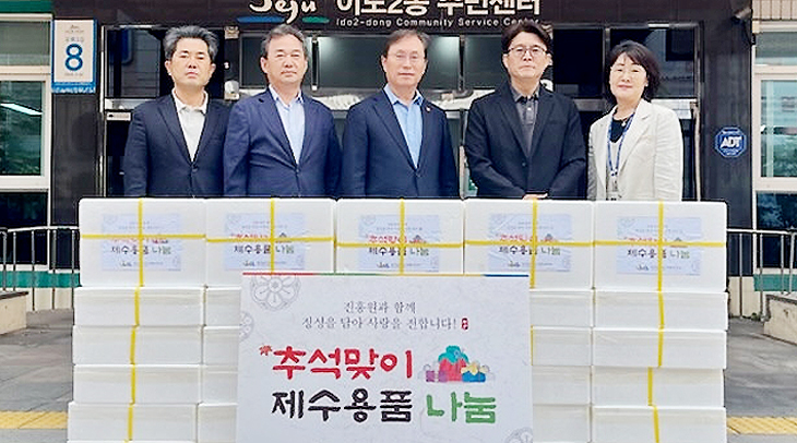 이날 진흥원은 제주도 출연기관으로서의 사회적 가치 실현을 위해 제주시 이도2동주민센터를 통해 저소득 1인 가구 40세대에 명절 제수용품 선물세트를 전달했다.