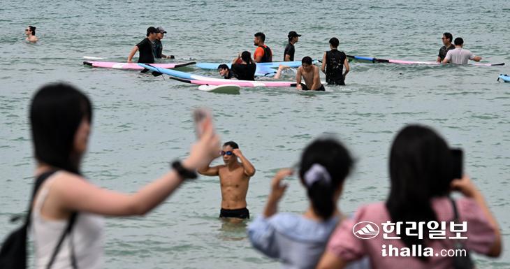 제주 늦더위 기승 때늦은 피서객