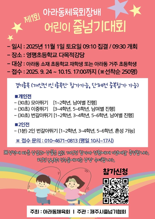 아라동체육회 11월1일 어린이 줄넘기대회 개최