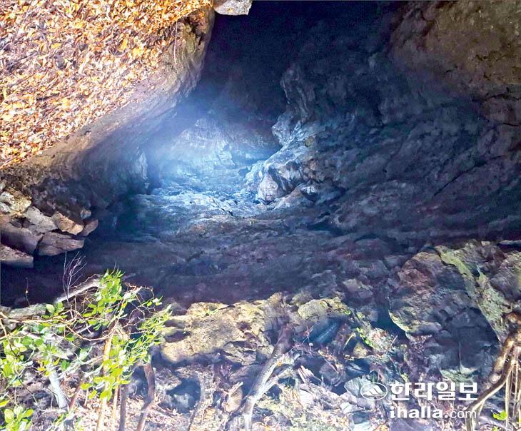 동굴내부에는 탄피(총알)와 그릇으로 쓰였던 도구들이 발견 됐는데 4·3당시 힘없는 주민들이 숨어들었던 곳임을 슬픈 어조로 설명해 분위기가 숙연해졌다. 재촉하는 걸음으로 이어 1차 용암교를 지나 웃산전굴(몽쿨랑)에 이르렀다. 낯선 야영텐트가 설치돼 있는 것을 발견했다. 안내자는 보전지역에 금지된 행위라고 사항을 설명하고 철거 조치를 권했다. 굴 아래로 내려가 보니 아찔하고 웅장하다. 한참을 머물러 천정에서 떨어지는 물소리와 대기류 현상으로 인해 시원한 자연의 에어컨을 누리며 서있다. 이곳저곳에서 셔터소리가 쉴 새 없이 들린다. 자연이 경관 앞에 감탄사가 절로 터져 나온다.