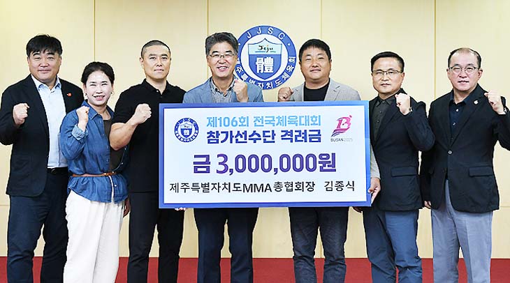 제106회 전국체육대회를 앞두고 김종식 제주도MMA총협회장이 제주도체육회에 격려금 300만 원을 기탁했다.