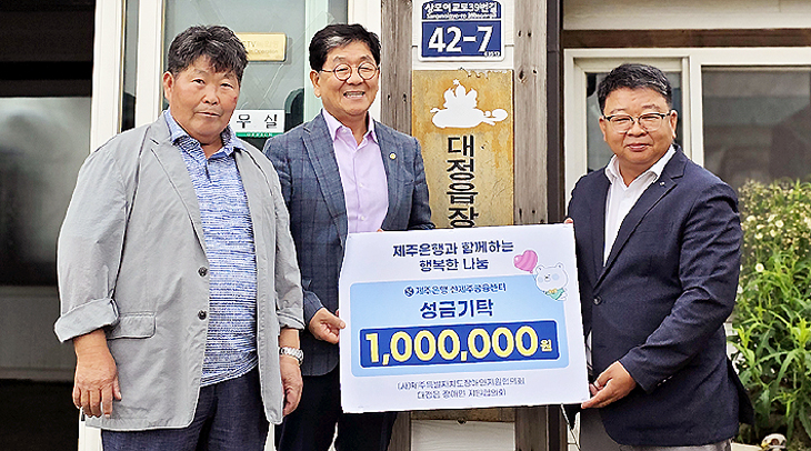 제주은행(은행장 이희수)은 최근 장애인 복지 증진을 위해 대정읍장애인지원협의회에 성금 150만원을 전달했다.