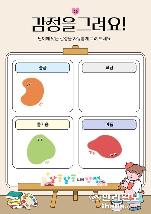 또한 가장 집중하는 활동은 지금, '오늘의 나'를 표현하고, 현재 느끼는 감정을 들여다보는 경험이다. 예를 들어 "오늘 내 마음은 연한 초록, 조용히 쉬고 싶어요." 이런 기록은 단순한 과제가 아니라 정서적 자화상이다. 마지막에는 작품을 서로 보여주며 '오늘의 나의 감정 색깔 이야기 나누기' 시간을 갖는다. 이 시간은 감정의 교류이자, 타인의 마음을 비추는 거울이 된다.