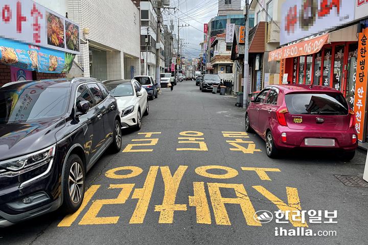 15일 오후 제주시청 대학로. 이 일대는 상습 불법 주정차로 인해 소방차 진입 곤란 지역으로 지정됐다.